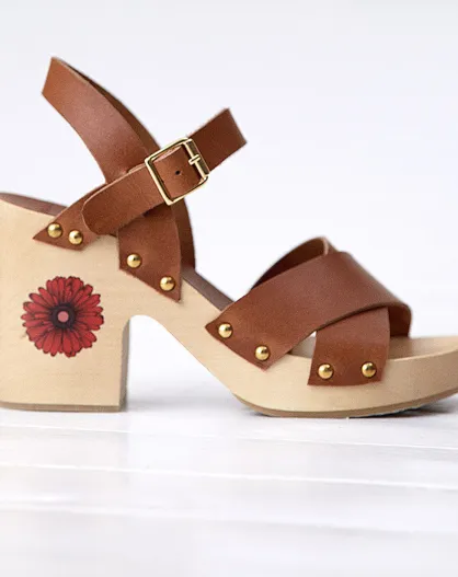 Zoccoli in pelle cognac Madeira - tacco 9 cm