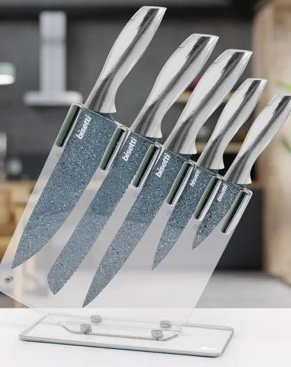 5 coltelli da cucina con supporto grigio Pierre Gourmet
