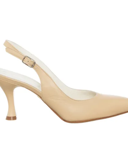 Slingback in pelle Lota beige - Tacco 7,5 cm