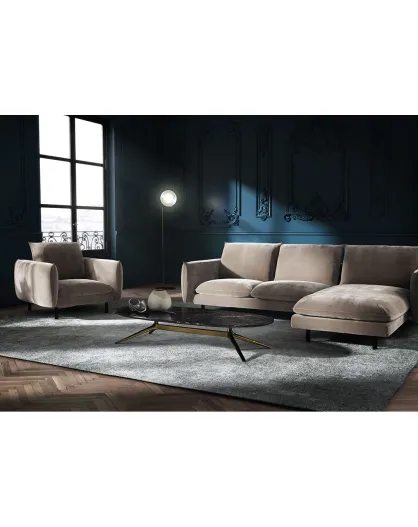 Divano angolare destro Emy taupe in velluto - 300x155x77 cm