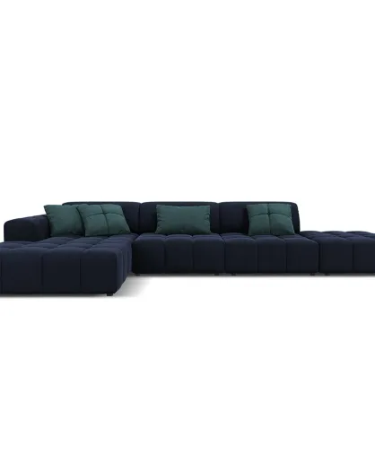 Divano angolare sinistro Velours Luc 5 posti blu scuro - 341x166x70 cm