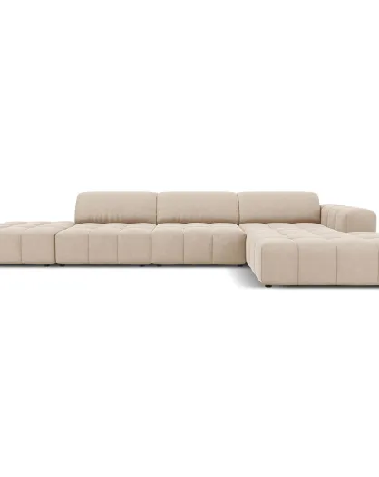 Divano angolare destro Luc Velours 5 posti beige - 341x166x70 cm