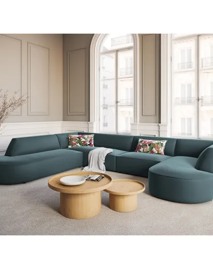 Divano angolare destro modulare panoramico Maurice in velluto color petrolio scuro - 335x245x70 cm