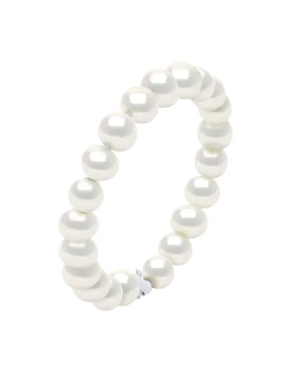 Anello in argento rodiato e perle coltivate d'acqua dolce bianche rotonde in madreperla naturale