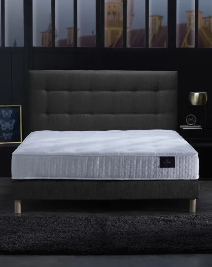 Set Comet: materasso a molle insacchettate + materasso a molle + testiera imbottita grigio antracite - 140x190 cm