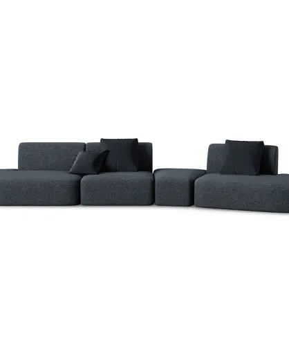 Divano modulare Chiara 6 posti destro blu melange - 412x124x74 cm