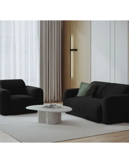 Divano Jasmine in velluto nero a 2 posti - 170x95x72 cm