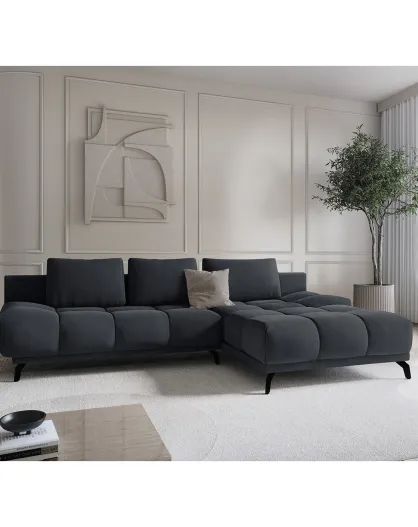 Divano angolare sinistro trasformabile con tronco Cirrus Velvet 5 posti grigio scuro - 290x182x90 cm