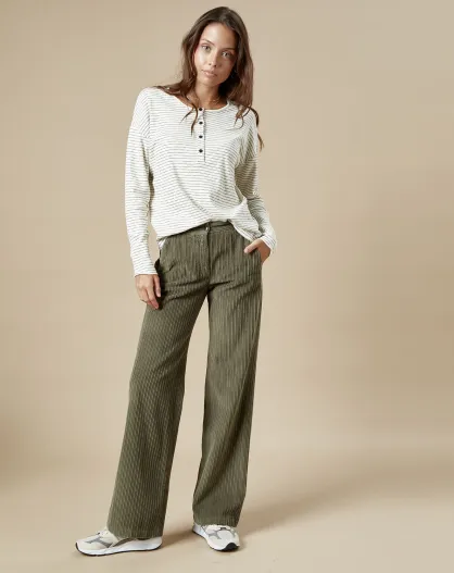 Pantaloni in velluto a coste color kaki Prago