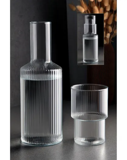 Caraffa + vetro a righe multicolore - 10x10x26 cm