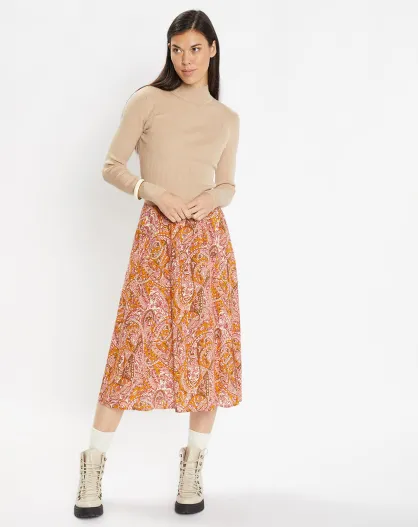 Gonna di media lunghezza Delta 100% seta beige dorato
