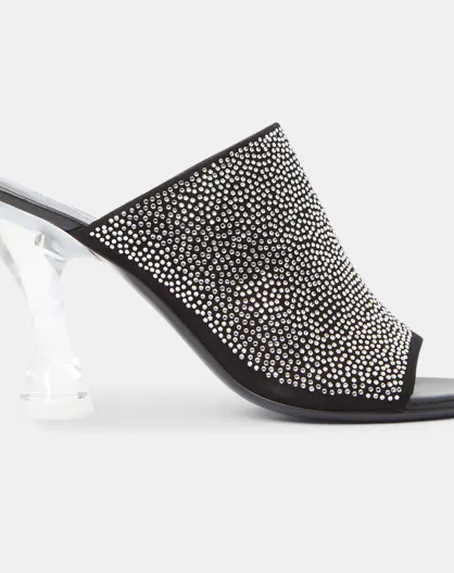 Sabot Luz in pelle e strass neri in velluto - tacco 10 cm