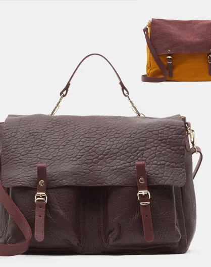 Borsa a tracolla Maxi Maths Bordeaux reversibile in pelle 24x35x9 cm