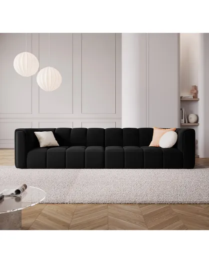 Divano Luc in velluto nero a 4 posti - 244x102x70 cm