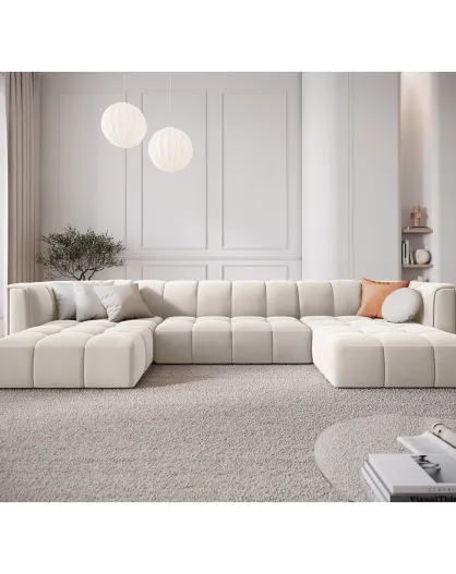 Divano panoramico (lato destro) Velvet Lyna 6 posti beige - 355x225x72 cm