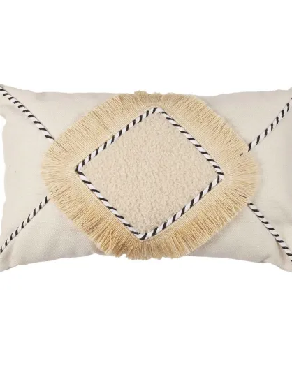 Cuscino etnico con nappine beige/nere - 40x40 cm