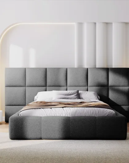 Letto a cassettiera in velluto grigio scuro Bona con testiera - 220x200x100 cm