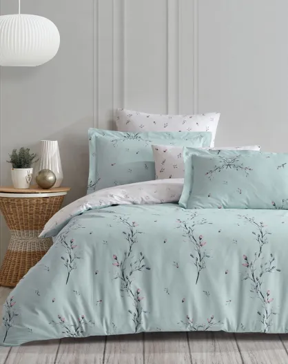 Set copripiumino 100% cotone satinato Coastal Indigo/Crema