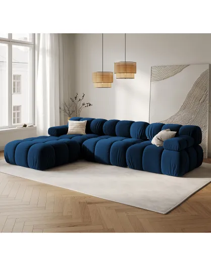 Divano modulare Tropea 4 posti in velluto blu royal - 282x188x63 cm