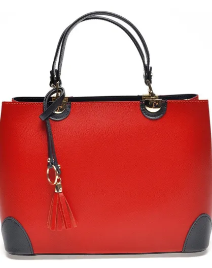 Borsa a mano in pelle rossa/nera - 23,5x36x12 cm