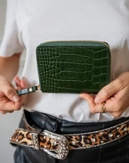 Compagno Mini Waly in pelle verde - 12x10 cm