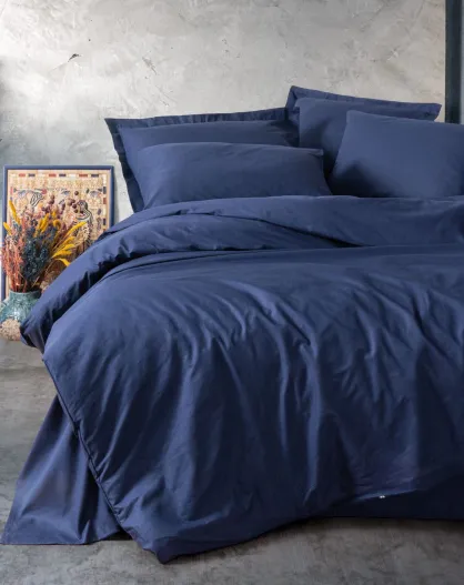 Set copripiumino in raso di cotone blu scuro