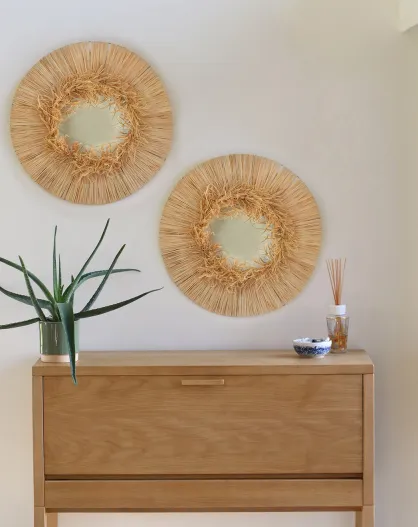 Specchio in rafia naturale fatto a mano El Nido - D.55 cm