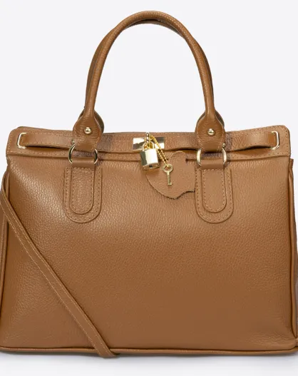 Borsa a mano Coralie in pelle cognac - 36x18x28 cm
