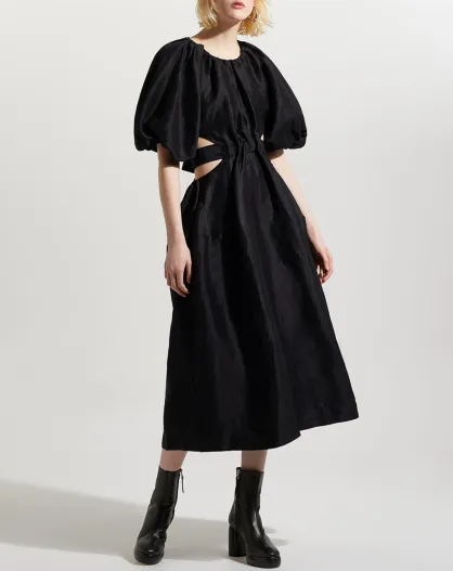Abito midi in misto lino con intaglio Mimosa nero