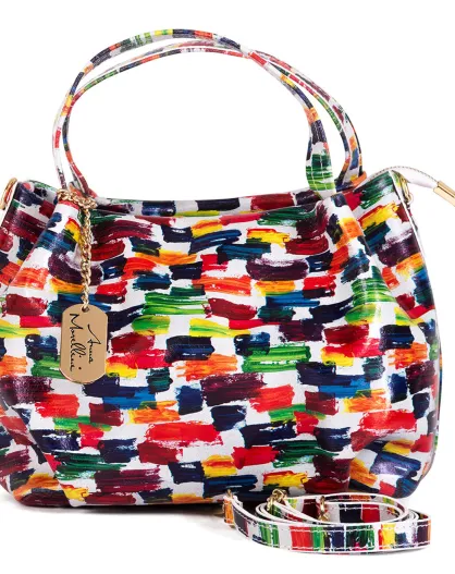 Borsa Anna Signature in pelle bianco/multicolore - 26x20x13 cm
