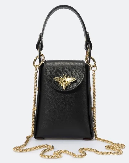 Custodia per telefono in pelle trasparente nera - 12x6x17 cm