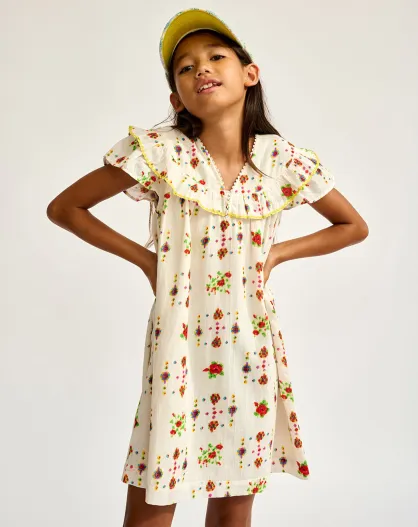 Abito corto Penelope a stampa floreale con volant ecru/multicolor