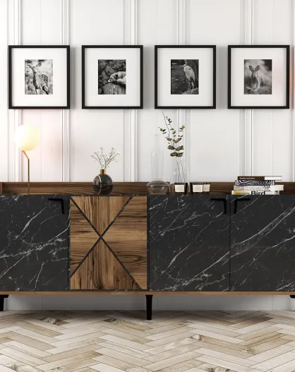 Credenza Kiev in noce/marmo nero - 160x78x35 cm