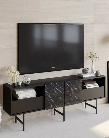 Porta TV Derin in marmo nero - 180x64,7x37,1 cm