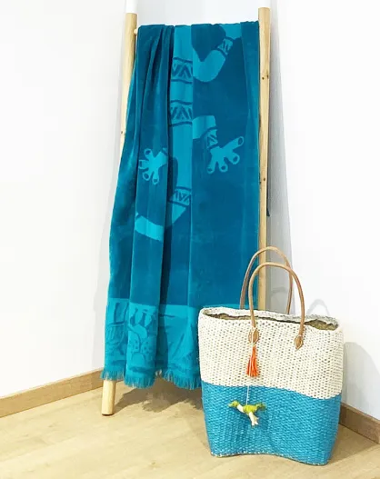 Telo mare Kariba in spugna velour verde/blu - 90x170 cm