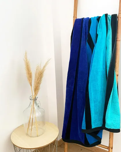 Telo mare Happy blue velvet in spugna - 140x180 cm