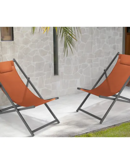 2 sedie cilene in metallo e tela grigio antracite/terracotta - 102x61x82 cm