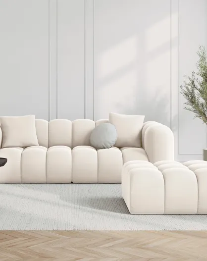 Pouf Loge in velluto beige - 102x102x40 cm