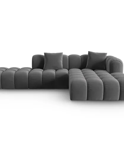 Divano angolare destro aperto Velours Clotilde 4 posti in cemento - 294x177x70 cm