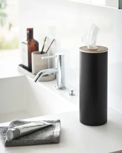 Scatola tonda per fazzoletti L Rin nera - 9,2x9,2x23,8 cm