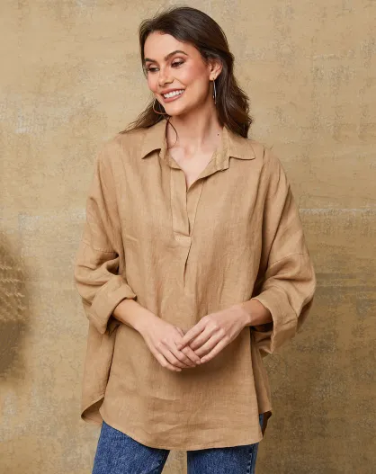 Blusa Dola camel 100% lino