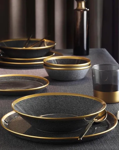 Servizio da tavola in porcellana nera/oro - 8 pezzi