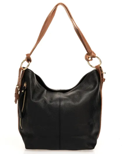Borsa a tracolla in pelle nera - 26x9x22 cm