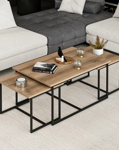 3 tavolini da caffè biologici Charlie Walnut Effect