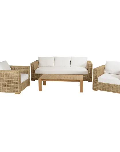 Mobili da giardino 1 divano e 2 poltrone + 1 tavolino Halice taupe/legno - 132x63x73 cm