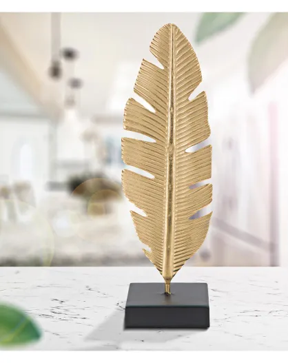 Scultura a foglia con portacandele glam oro/nero - 12x11x36 cm