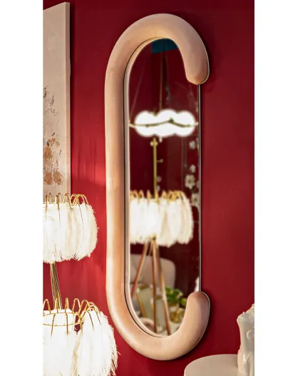 Specchio da parete Chantal in velluto rosa - 166x67x12 cm