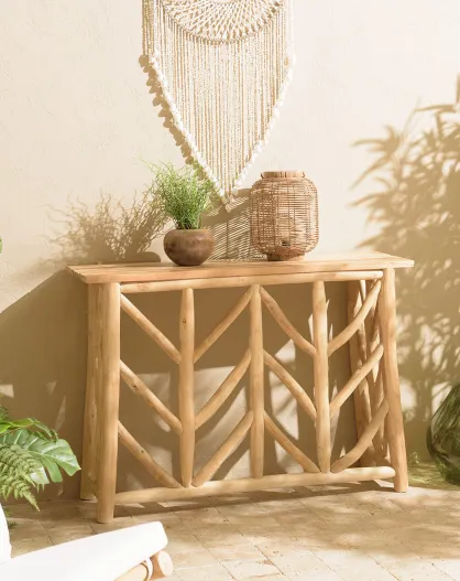 Consolle in teak naturale con base traforata sarà naturale - 120x35x85 cm