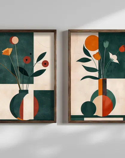 Pittura decorativa 2 pezzi vasi a forma geometrica multicolore - 50x70x3,5 cm