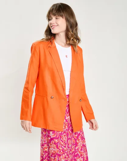 Giacca blazer oversize arancione in misto lino